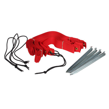 Tkaný polyesterový popruh, červenej farby, cenovo priaznivejšie variant lajn k plážovému volejbalu.