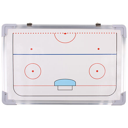 Trénerská tabuľa na hokej je nevyhnutný doplnok každého hokejového trénera naprieč všetkými súťažami. Taktická hokejová tabuľa Merco HOKEJ 43 je obojstranná magnetická doska s farebným prevedením polovice z jednej strany a z druhej strany celého hokejového ihriska v hliníkovom ráme. Súčasťou hokejovej tabuľe Merco HOKEJ 43 je 6 + 6 farebne rozlíšených magnetov, samolepky s číslami a čierny popisovač ktorého súčasťou je aj malá špongia. Závesná trénerská tabuľa Merco HOKEJ 43 je ideálny pomocník pre taktické porady v hokejovej šatni. Celkový rozmer tejto tabule je 45,5 x 30,5 cm a celková hmotnosť 650 g.