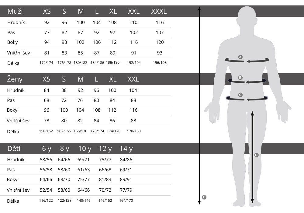 | Veľkosť | 6 r, 8 r, 10 r, 12 r, 14 r, S, M, L, XL, 2XL, 3XL |