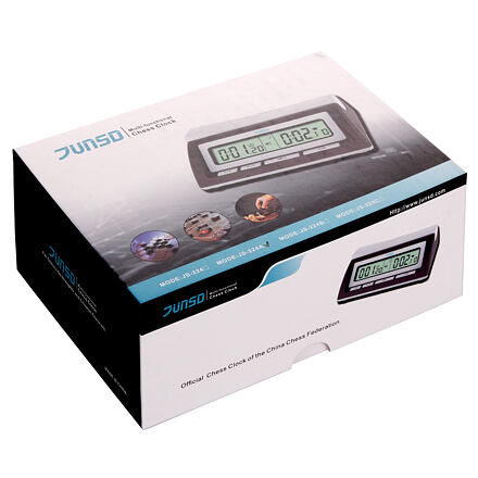 JUNSD JS-224A je populárnym modelom šachových hodín pre svoje malé rozmery a 20 režimov nastavenia. Široko variabilné nastavenie hodín využijete pro hrania šachu, dámy a ďalších strategických doskových hier, u ktorých je potrebné merať strávený čas pred ďalším ťahom na účely rozhodnutia patovej situácie alebo jednoducho pre získanie zaujímavé štatistiky. Hodiny sú vybavené možnosťou nastavovať časovanie aj počas hry na oboch stranách. Ľavá i pravá strana hodín môže byť nastavená s rozdielnym časom a inými parametrami sa zvukovým znamením, keď je hra u konca. V režime odpočtu času aj v režime pre sčítanie času je potrebné hodiny reštartovať. Hodiny sú opatrené veľkým a prehľadným LCD displayom, ich vonkajší dizajn je zhotovený z ABS plastu. Nezáleží či hráte šach so svojimi priateľmi alebo jazdíte po krajských, štátnych i medzinárodných šachových turnajoch. Hodiny Junsd JS-224a sú vytvorené pre všetky pretekárske hráčov všetkých úrovní. JS-224a sú zabalené v úhľadné krabičke.JS-224A:- vhodné pre rôzne druhy súťaží, vrátane štandardného režimu časovania- 20 režimov časovanie- čas, doba hrania, počet kôl a pohyby figúrok sú nastaviteľné a môžu byť počas pauzy upravované- automatická pamäť nastavených predvolieb- kolískové tlačidlo pre prepínanie meranie času- zvukové upozornenie- upozornenie slabej batérie- rozmery: 150 x 105 x 50 mm- 2x AA batérie, nízka spotreba
