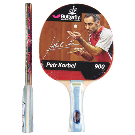 Pálka na stolný tenis Butterfly Korbel 900 sa dá vystihnúť veľmi stručne. Avšak iba dve slová zaručujú kvalitné vastnosti, ktoré tento model svojím potenciálným majiteľom ponúká! Tie slová sú rýchlosť a rotácia. Korbel 900 je shválený ITTF. Rýchlosť – 55, rotácia – 56, kontrola – 56. Hmotnosť rakety je 154 g.