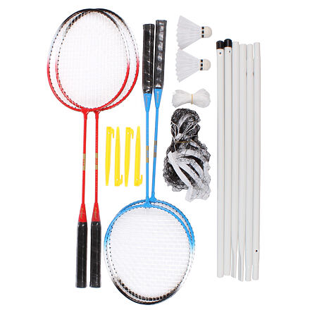 Kompletný bedmintonový set pre deti, začínajúcich a hobby hráčov. 4 rakety, 2 loptičky a sieť s konštrukciou v praktickom obale.