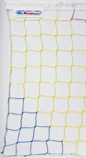 Sieť VOLLEYBALL plážová: Beachvolejbalová sieť na voľný čas. Farebná uzlová sieťovina z polypropylénu 2 mm, oko 100 mm. Hore PES biela páska 50mm pretiahnutá šnúrou o dĺžke 12,5 m. 4 úväzky. Dole obšitie.