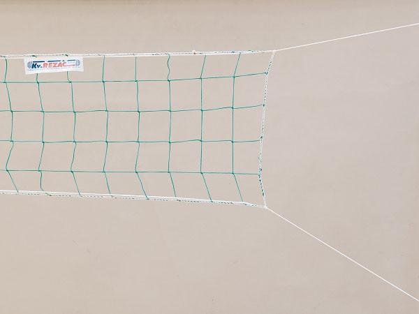 Sieť VOLLEYBALL – pre školy: Tréningová sieť pre školy. Uzlová sieťovina zelená z polypropylénu 2 mm, oko 10 cm. Bez pásky, len obšitie. K horným a spodným okrajom je prišitá PA biela šnúra s dĺžkou 12,5m, ktorá tvorí úväzky slúžiace na pripevnenie k stĺpikom.