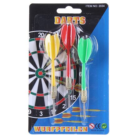 Praktické balenie troch šípok rôznych farieb s kovovými hrotmi k sisalovému terči.