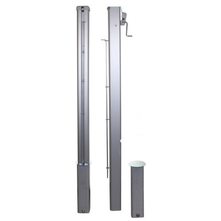 Hranaté tenisové stĺpiky Square 80 sú technicky eloxované alebo ošetrené práškovou farbou. Jeden stĺpik má hmotnosť 5kg, je opatrený zosilnenými hliníkovými profilmi a napínacím mechanizmom. K napínanii siete slúži špeciálny kľúč. Po vysunutí stĺpikov sa púzdra uzavrú záslepkami. Komplet tvorí – pár stĺpikov, pár tyčiek na uchytenie siete a hliníkové púzdra so záslepkami.