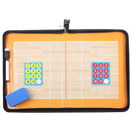 Skladacia taktická tabuľa pre trénerov volejbalu a volejbalové kluby. Ľahko prenosná, obal zo syntetickej kože, rozmery po rozložení 42 x 28 cm.